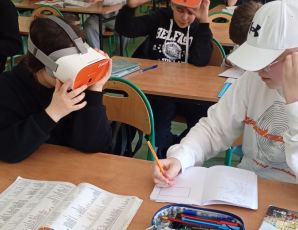 Podczas ostatnich zajęć uczniowie klasy 8b przenieśli się w wirtualny świat dzięki technologii Google VR. Wykorzystując gogle VR, mogli „odwiedzać” różne mieszkania i domy, a następnie w języku niemieckim opisywać pomieszczenia oraz wskazywać wady i zalety danego miejsca zamieszkania.