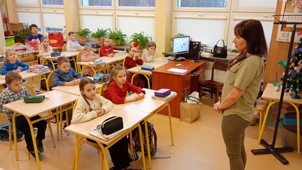 Uczniowie klas 1–3 wzięli udział w wyjątkowych warsztatach „Z kamerą wśród pszczół”, prowadzonych przez panie z Zespołu Świętokrzyskich i Nadnidziańskich Parków Krajobrazowych na zaproszenie szkolnej biblioteki. Dzieci dowiedziały się, czym jest park krajobrazowy oraz poznały fascynujący świat pszczół – czym są pyłek, miód, pierzga, propolis i węza.