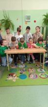 Na szkolnym korytarzu przygotowane zostało również stanowisko, gdzie każdy chętny uczeń mógł podejść i zweryfikować swoją wiedzę z tabliczki mnożenia. Za poprawnie rozwiązane przykłady uczestnicy otrzymywali słodki upominek.